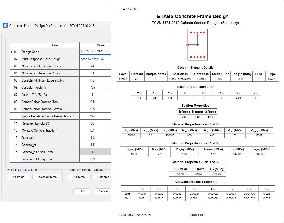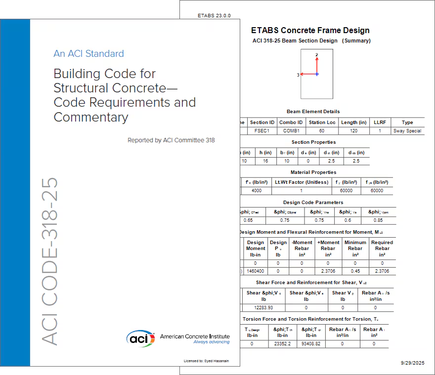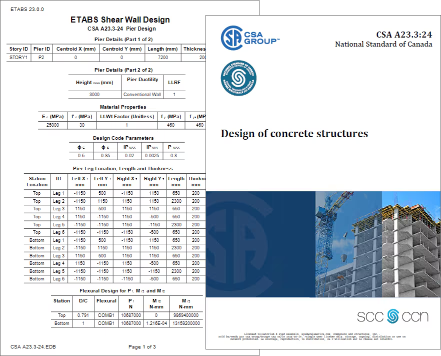 O dimensionamento de paredes resistentes (Shear Walls), o dimensionamento de pórticos de betão e o dimensionamento de lajes de betão armado e pré-esforçado (pós-tensionadas) segundo a norma ACI 318-25.
