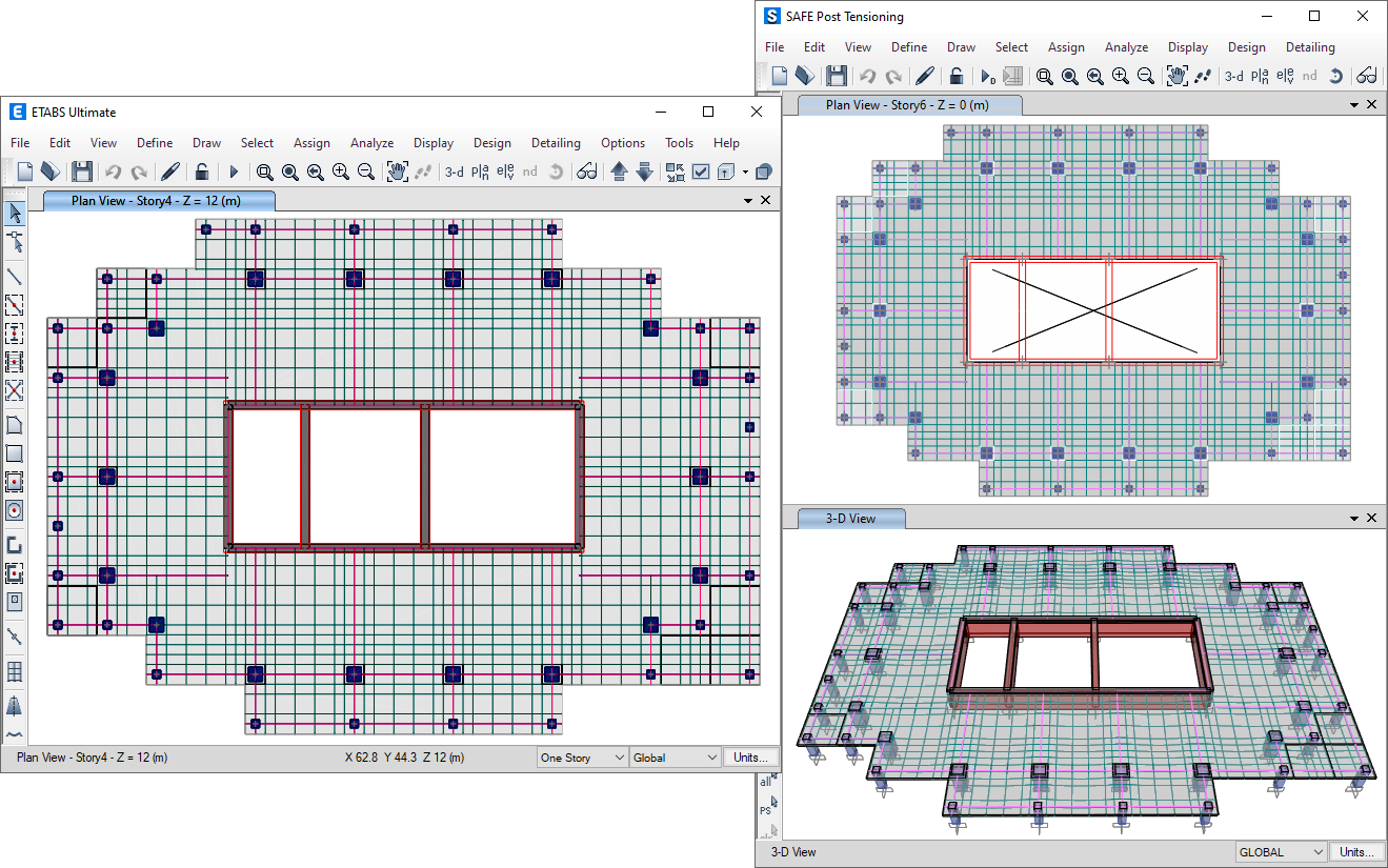 Passa a ser possível a importação de modelos SAFE para o ETABS ao nível de um piso à escolha do utilizador, com opções avançadas para fundir a geometria, as definições de propriedades e a atribuição de ações (cargas).